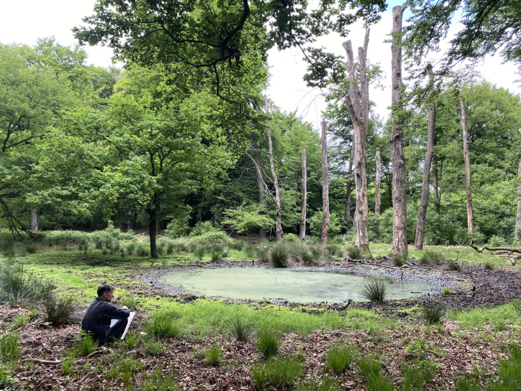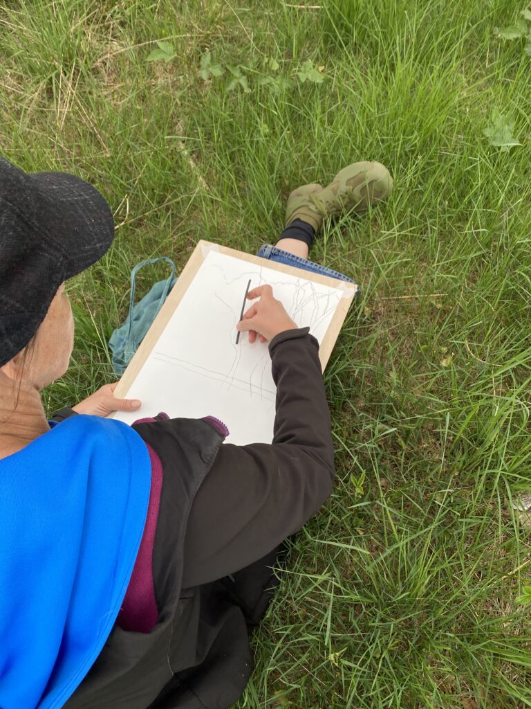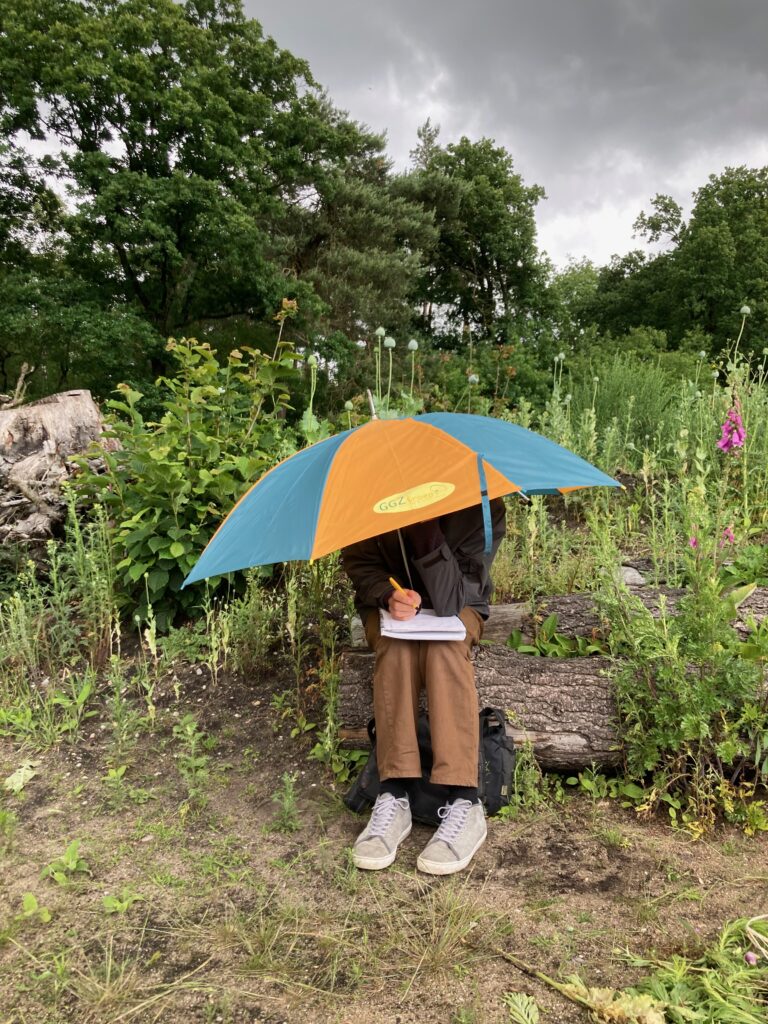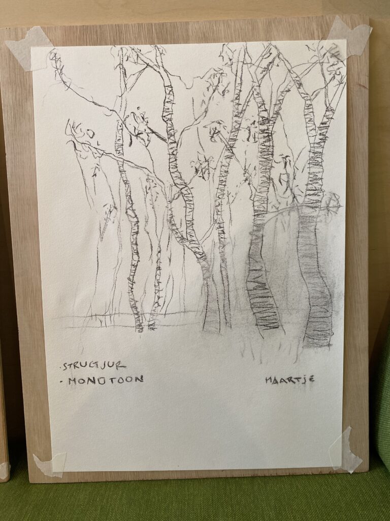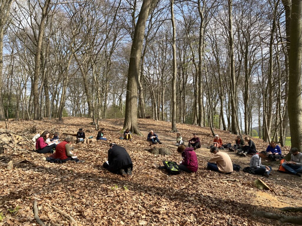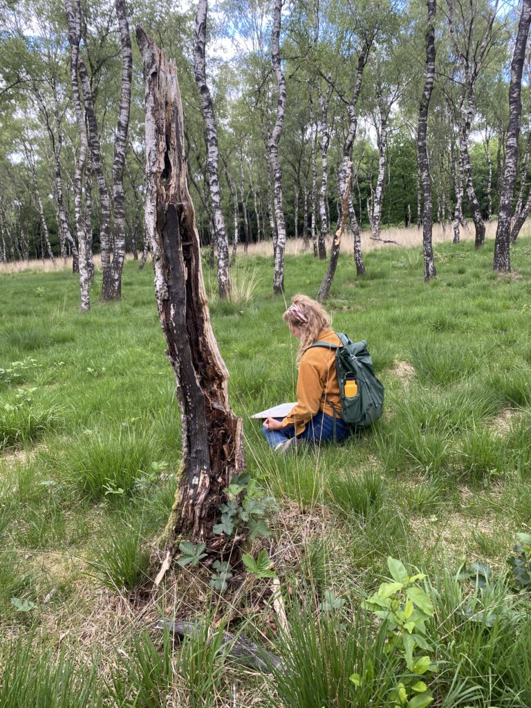 We wandelden, zaten stil, luisterden, tekenden, schreven. Wat doet dit landschap met ons? Wat is er ‘heel’ of juist ‘beschadigd’?